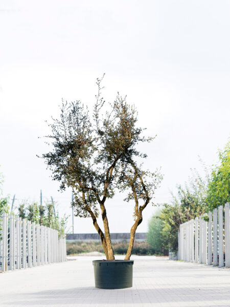 Deze exclusieve Quercus suber is een bekende verschijning die afkomstig is uit het gebied rond de Middellandse Zee. Deze meerstammige boom is een eik die in de winter groene bladeren behoudt. Een andere benaming is de ‘kurkeik’ omdat de schors traditioneel eens per zeven jaar verwijderd wordt voor de productie van kurk. Het is een grijsbruine schors die zacht aanvoelt en vanaf vier jaar groeven zal ontwikkelen. Wanneer de schors is verwijderd zal een roodbruine stam zich vertonen. De bladeren van de Quercus suber zijn wintergroen met een donkergroene tan kleurstelling en een ovale vorm. De bladeren zijn glanzend met een grijs witte onderzijde die een vilt structuur heeft. Er groeien zoals het een eik betaamd eikels aan de boom. Er is geen specifieke bloeiperiode. Dat wil dus zeggen dat deze boom het hele jaar kan bloeien. Zo zal deze boom ook vrijwel het hele jaar rond eikels dragen. Pas wanneer de stam een doorsnede heeft van zestig centimeter is het mogelijk de schors te oogsten. Als je een boom besteld die exlusief is dan krijg je exact de boom op de foto.Kenmerken