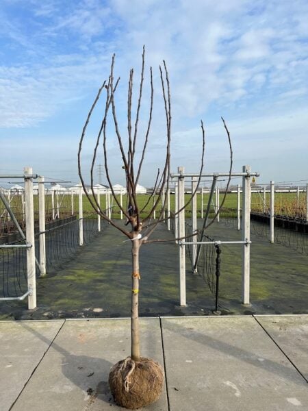Breng een mediterrane sfeer in uw tuin met de Vijgenboom - Ficus carica 'Brown Turkey'. Dit exemplaar is gekweekt als halfstam, wat betekent dat de vertakking van de kroon begint op een stamhoogte van ongeveer 100 - 120 cm. Met een totale leverhoogte tussen de 230 en 280 cm haalt u direct een volwassen blikvanger in huis die direct voor karakter en schaduw zorgt.